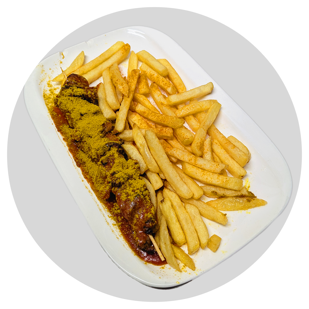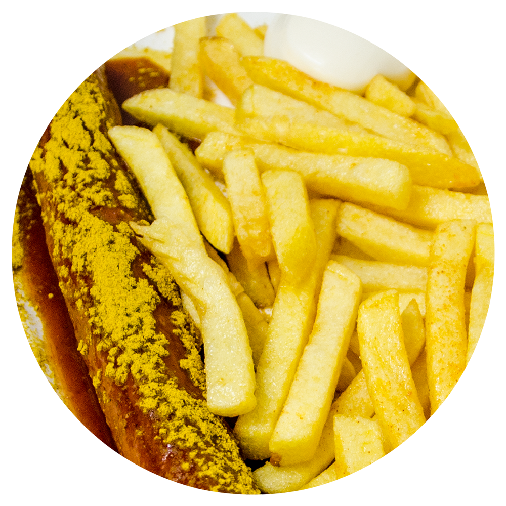 Die riesen Currywurst mit Pommes war sehr lecker!