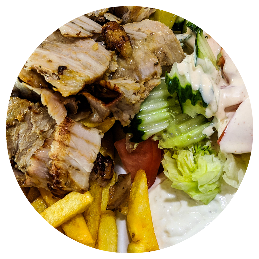 mit Gyros, Zaziki und Salat